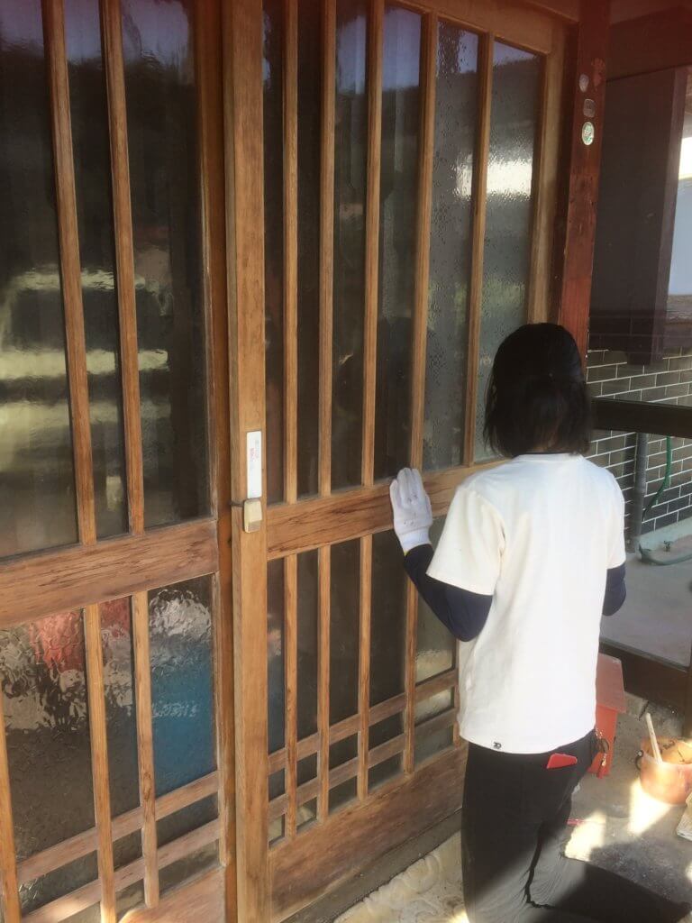 2月からひたすら繰り返していたのは建具削りと塗装作業。素敵な木枠の建具が多いこのおうち。日当たりもよいため紫外線で木が日焼けしボロボロになっていました。