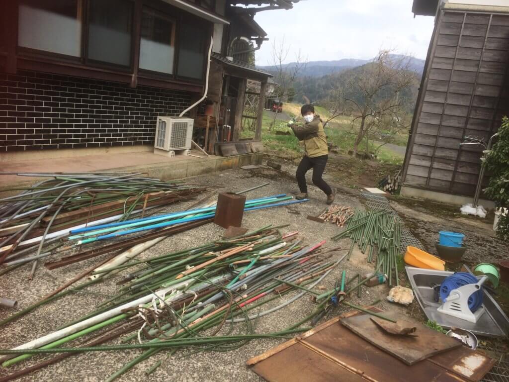 その後畑の開墾!このおうちで使われていたであろう園芸用の品々をひたすら処分させてもらいました。折れ曲がったものとまだ使えるものを分けて、使えるものは有難く使わせてもらいます!!